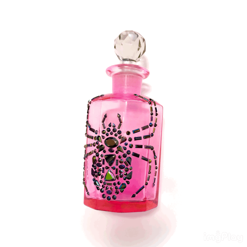 Poisonous Perfume. Adding arsenic and cyanide to perfume is an ancient guise. This beautiful pink bottle works perfectly with my decor. I added an iridescent spider decal to warn guests of its sinister stench. I found The deadly history of women using perfume as poison for inspiration.