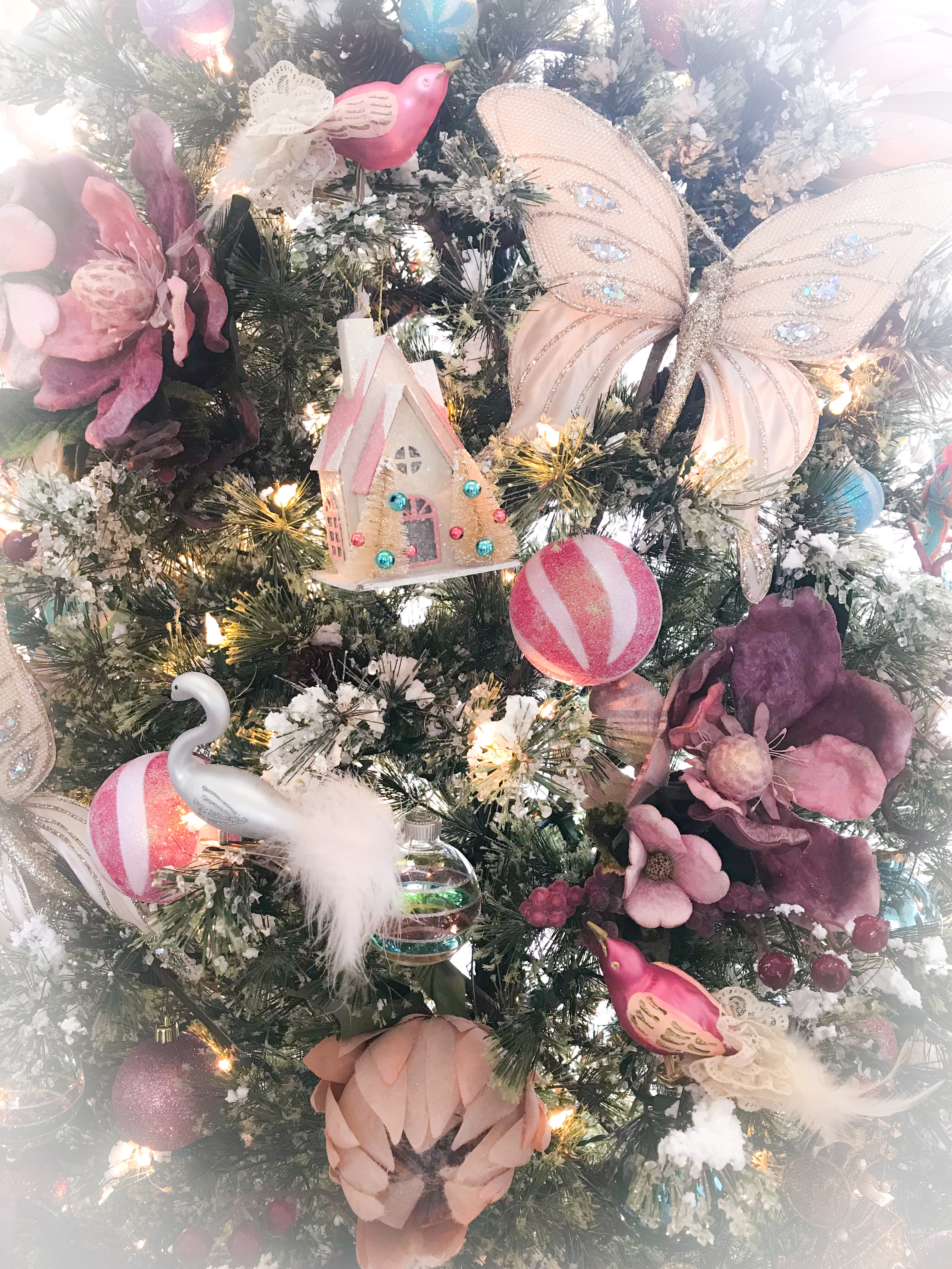 Pink magnolias, Protea flowers, butterflies and birds adorn my Pink Paradise Christmas tree. When I look at this tree it reminds me of the softer side of Australia.