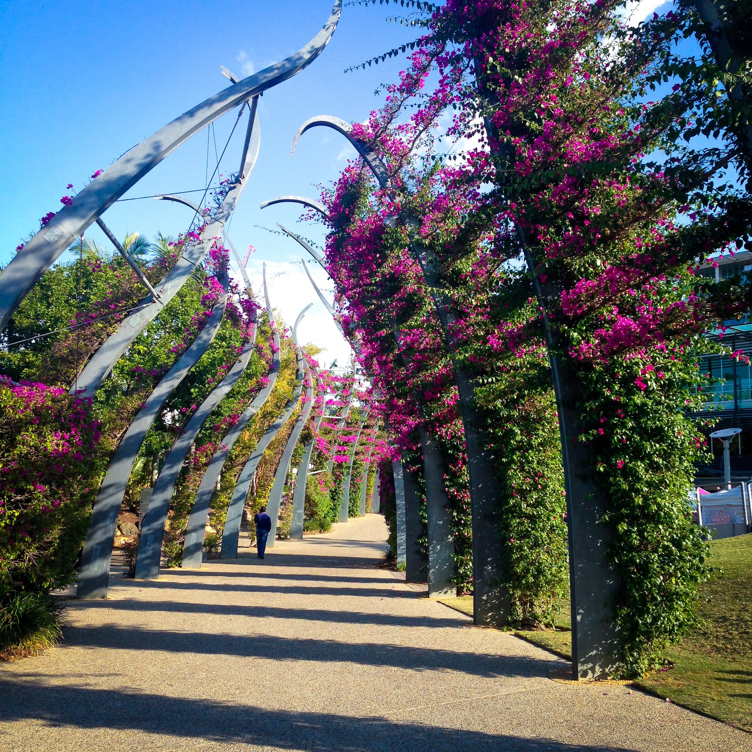 Bougainvillea vines on a modern trellis at Brisbane’s South Bank.