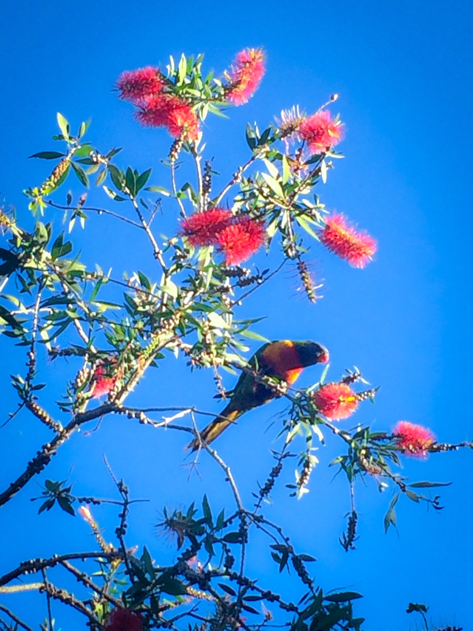 Bottle Brush Tree with colorful parrot in the front yard of our Brisbane residence.