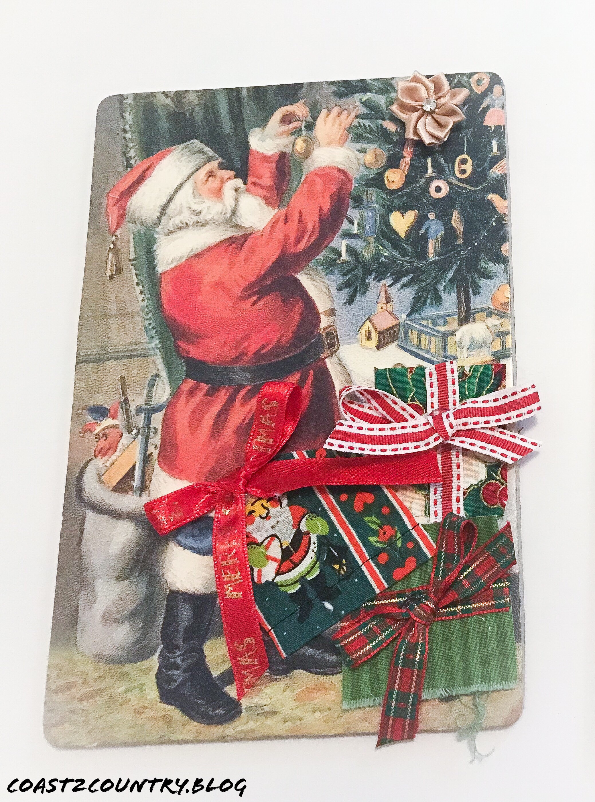 I found two vintage christmas cards that were damaged and wanted to give them a new life.