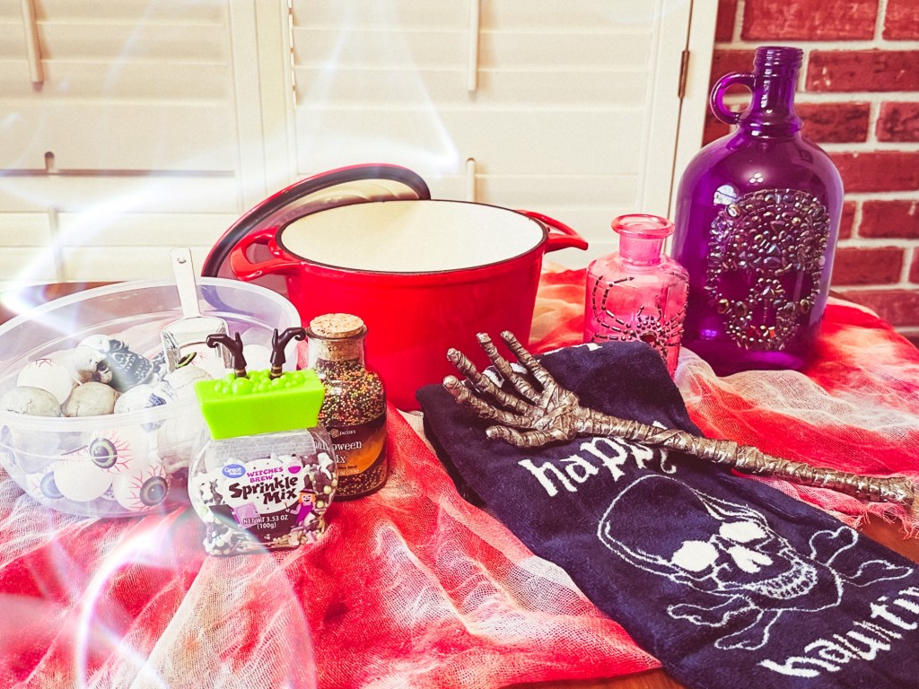 This witches’ brew combines science with Halloween fun! The reaction between baking soda and vinegar creates a fun and fizzy eruption, and the addition of spooky props makes it feel like a real potion. Plus, the candy sprinkles add a sweet, sparkling touch, making it just as delightful to look at as it is to create.