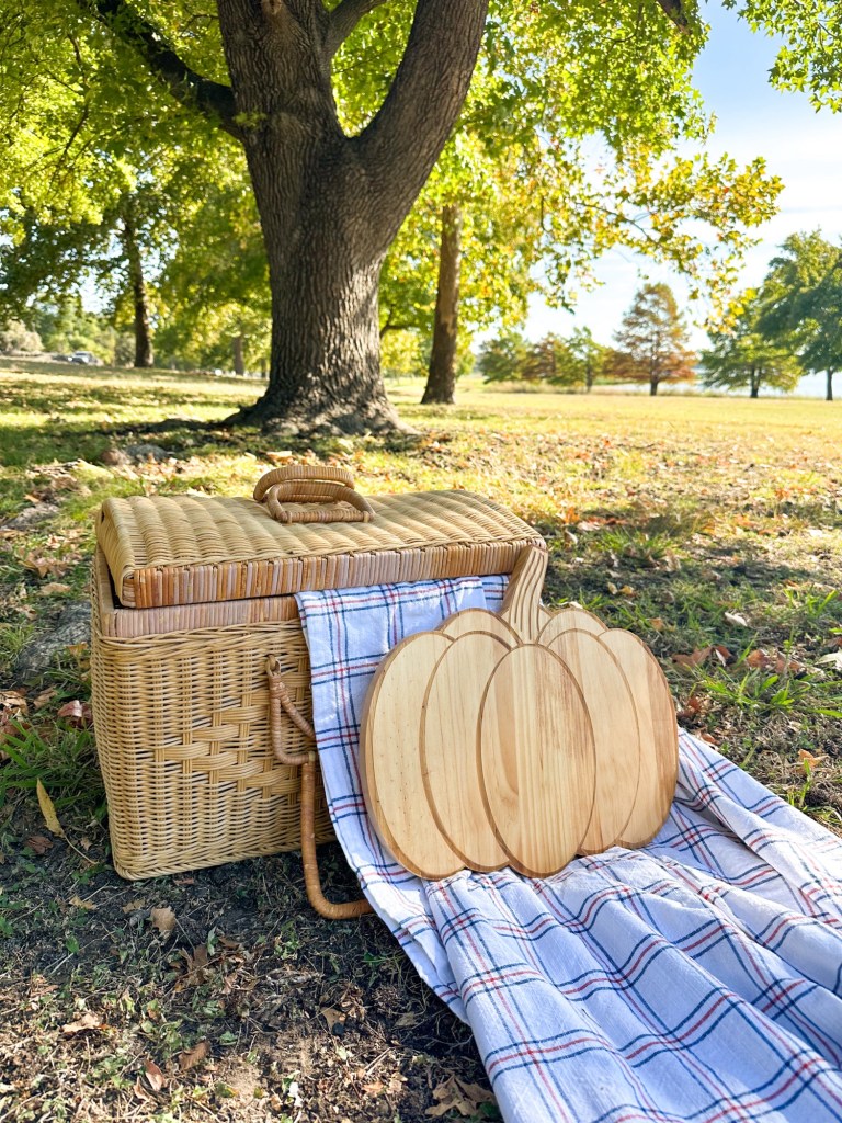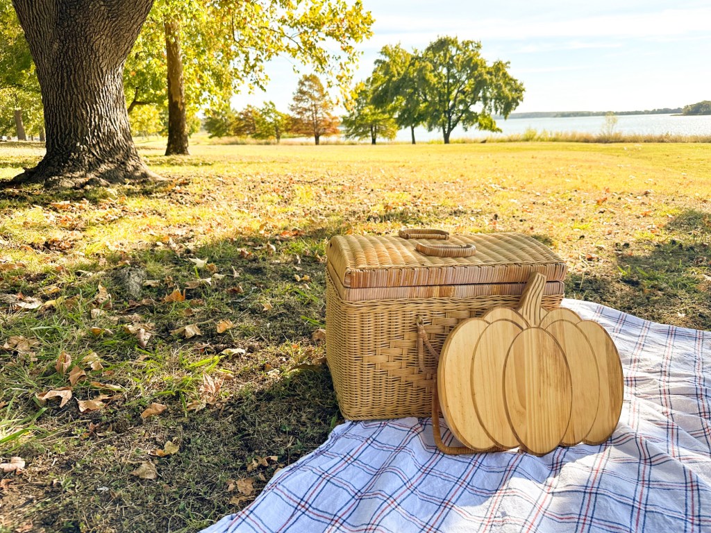 A fall picnic under a sweet gum tree by the lake is the perfect way to embrace the season. Grab Creative Gifts’ Pumpkin charcuterie board for 20% off (use code CC20) to complete your setup and make it an autumn day to remember. 🍂