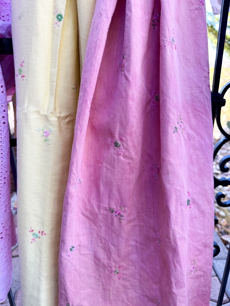 Each item took on its own unique shade, adding depth and character to the fabric while showcasing the beautiful unpredictability of natural dyes. Cochineal dye has a range of potential colors, from deep reds to soft pinks, so adjusting the concentration and time allowed me to create this beautiful shade. The end result was a fun fuchsia that captures the essence of natural dye and gives the fabric a unique, handcrafted feel.