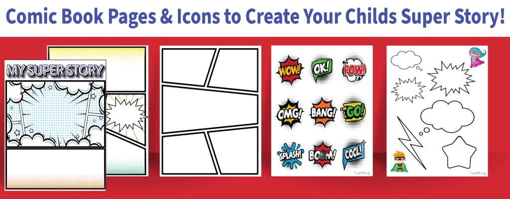 5. Create Comic Books: Use our printable comic book templates to help your kids draw themselves as the hero of their story. 4 unique sheets!