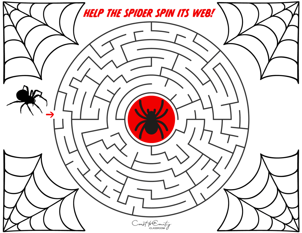 • Free Printable Web Maze: Help the spider spin its web! Please follow our blog with download!