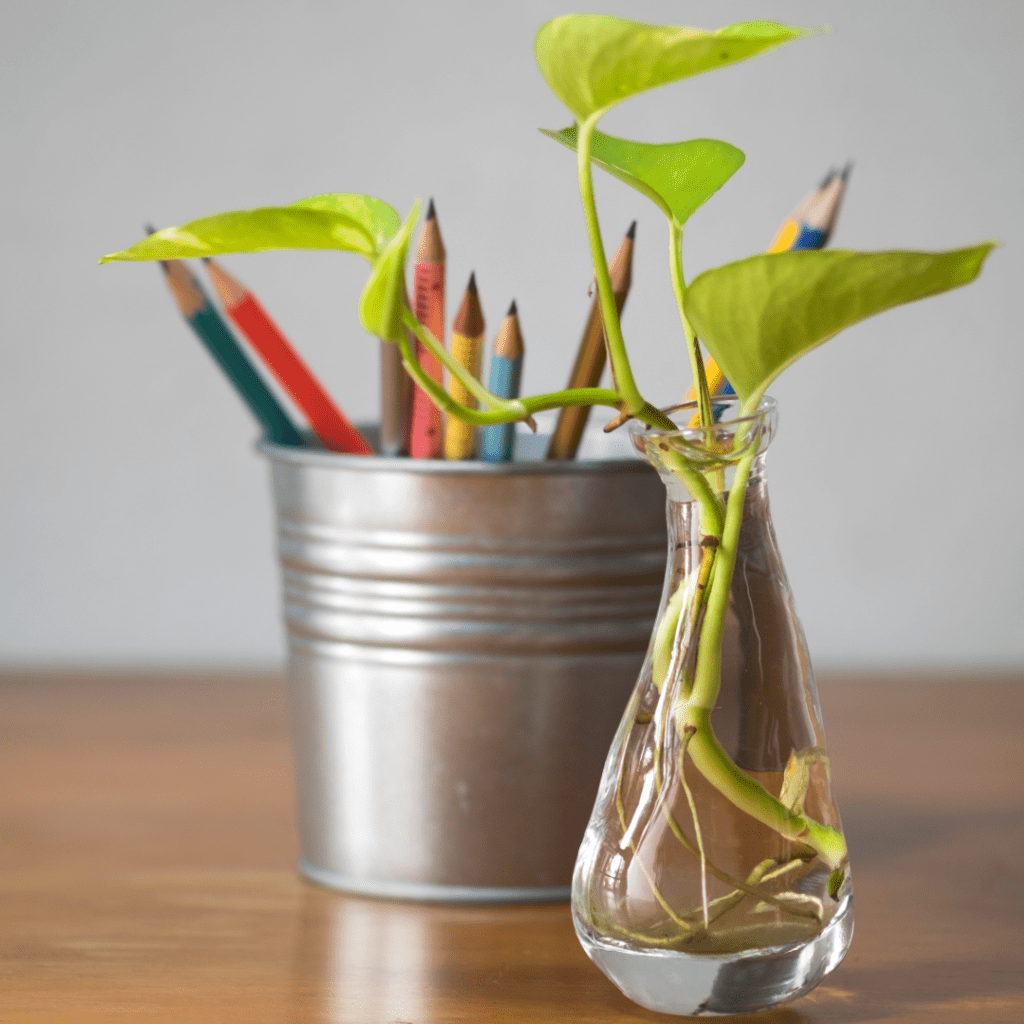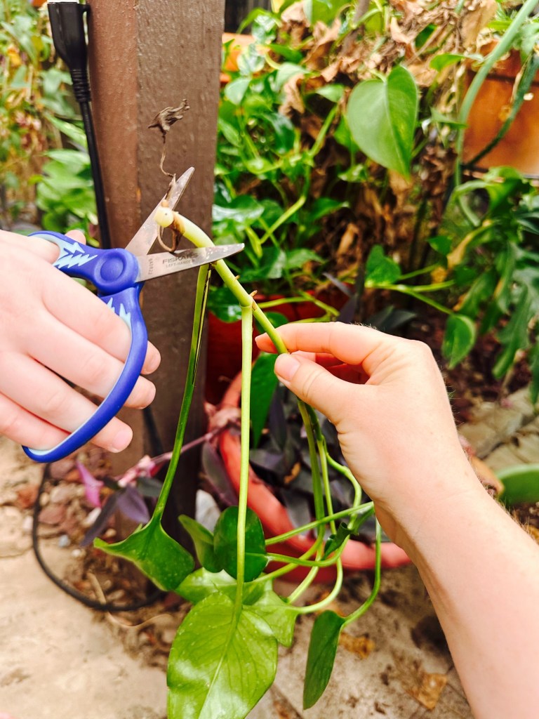 Step 1: Snip a healthy pothos cutting with a few leaves and a node (the little bump where roots will grow).