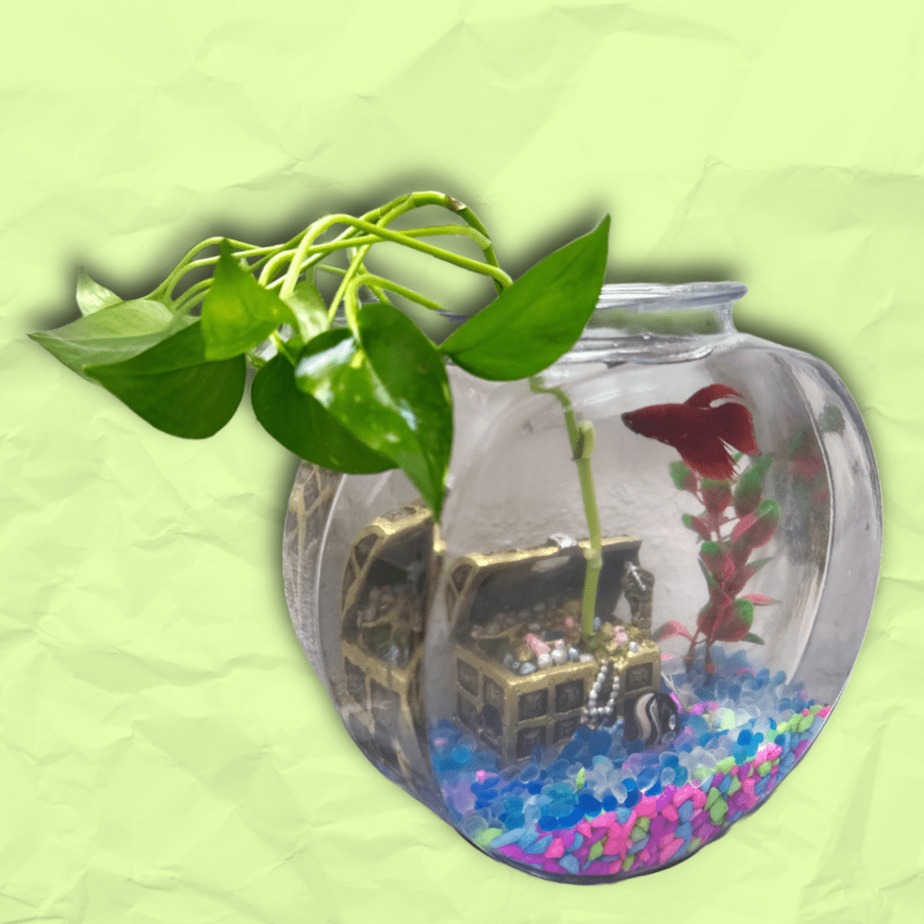 Propagation means growing new plants from cuttings of existing ones. It’s a cool way to watch plants grow and learn how we can multiply nature! By snipping a small piece of ivy pothos and placing it in your betta’s water, kids can see how the plant roots, thrives, and even helps clean the water!