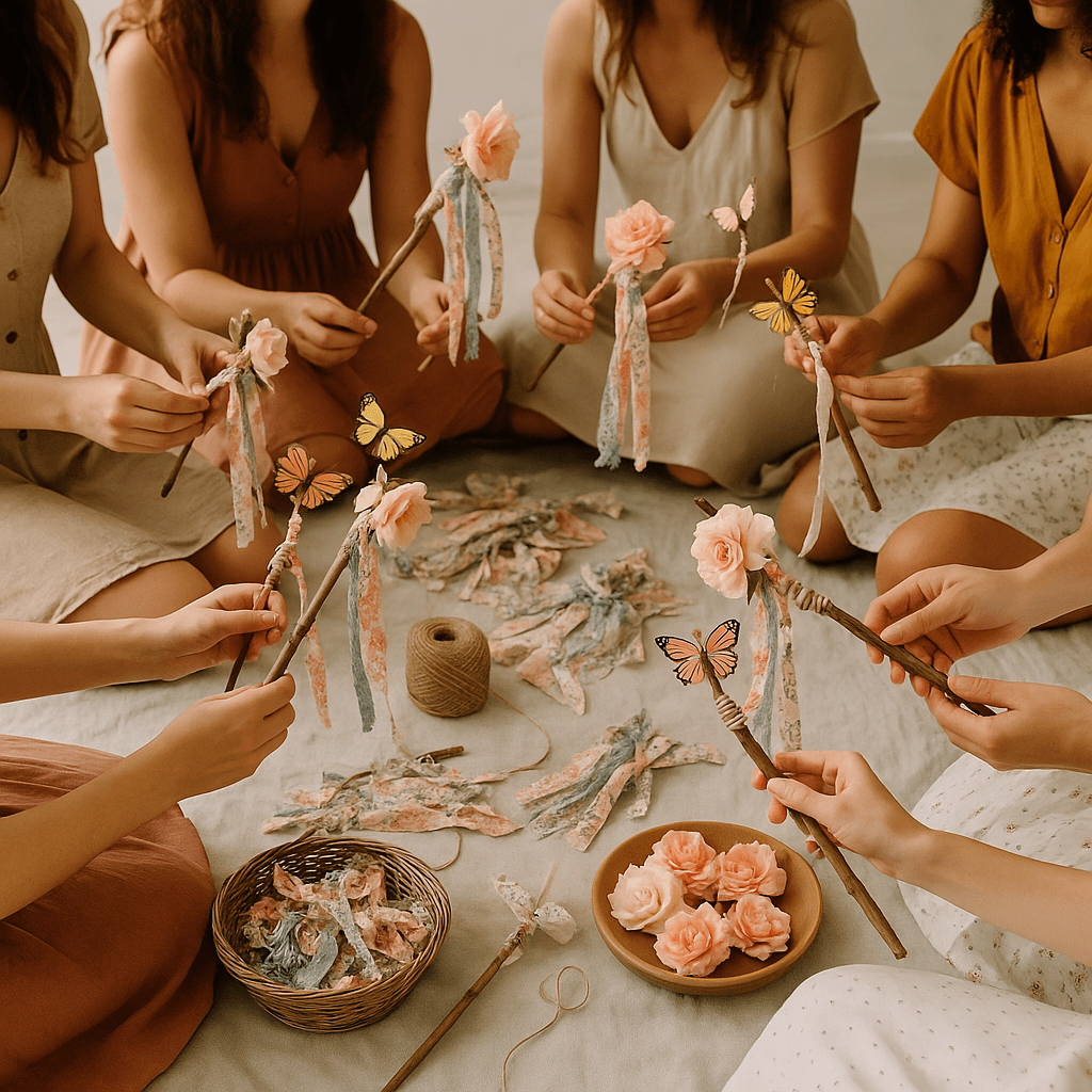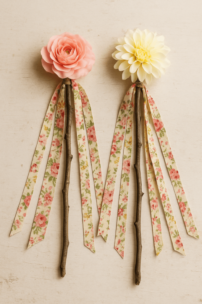 Crafting these whimsical wands was more than just adding flowers and wrapping sticks — it was a return to the joy of creating without pressure, of using our hands, and letting beauty unfold naturally.