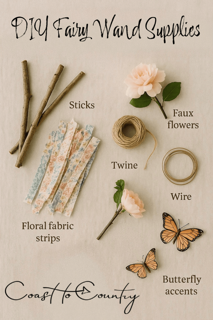 Gather sticks from your yard or favorite trail. Tie or glue on fabric strips, ribbon, or lace — whatever you love! Add a faux flower, crystal, or charm to the top for that extra sparkle. Wrap the base in copper wire or yarn if you’d like a more detailed finish. Set an intention as you make it — whether it’s joy, peace, or a little mischief.