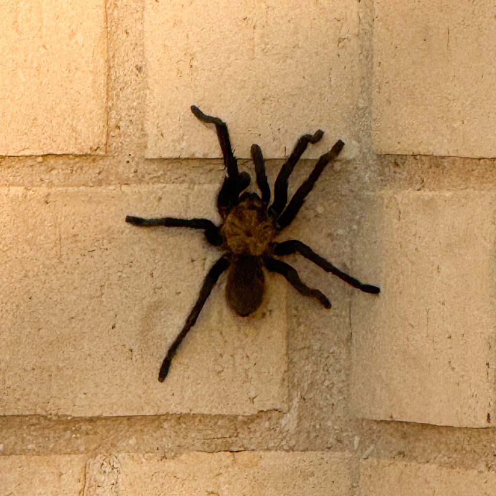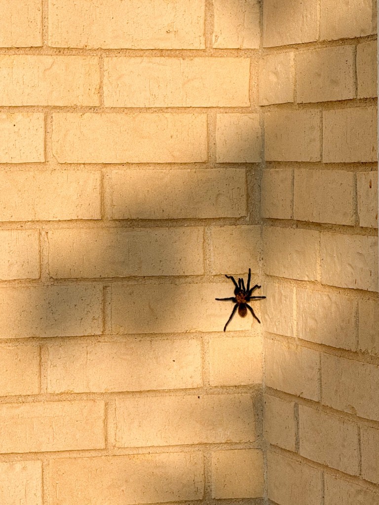 Until this week… when a Texas brown tarantula scaled the brick wall of our house and somehow ended up in that exact bedroom.