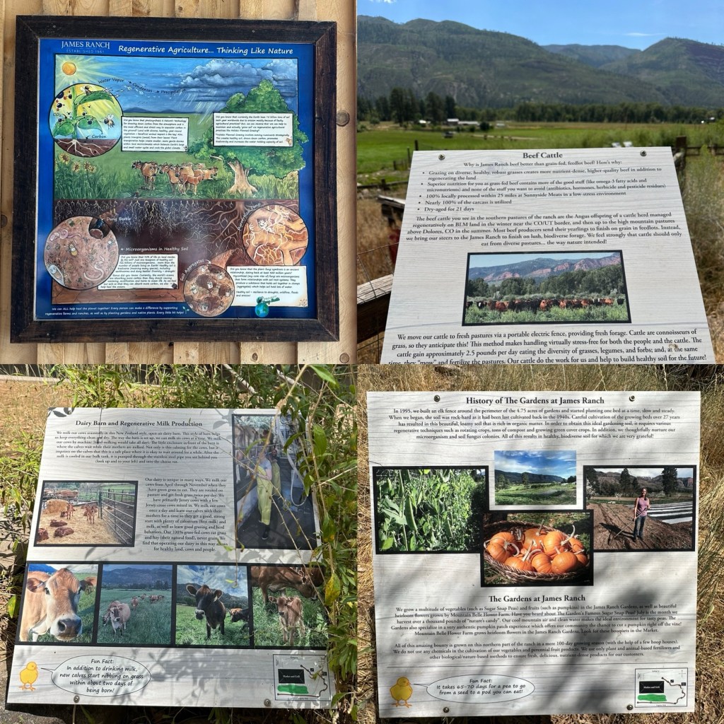 For lunch, we stopped at James Ranch, just north of Durango, and discovered that it’s so much more than a place to eat, it’s a living example of regenerative farming. Over grass-fed burgers and farm-fresh veggies, we talked about how the ranch raises animals, produces artisan cheese, and grows food in ways that protect the soil and water.