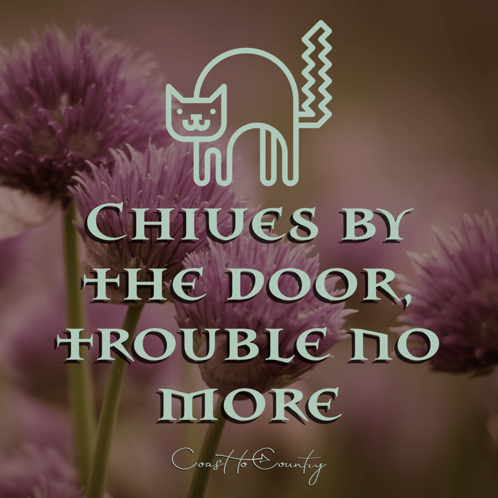 Rhyme: “Chives by the door, trouble no more.”